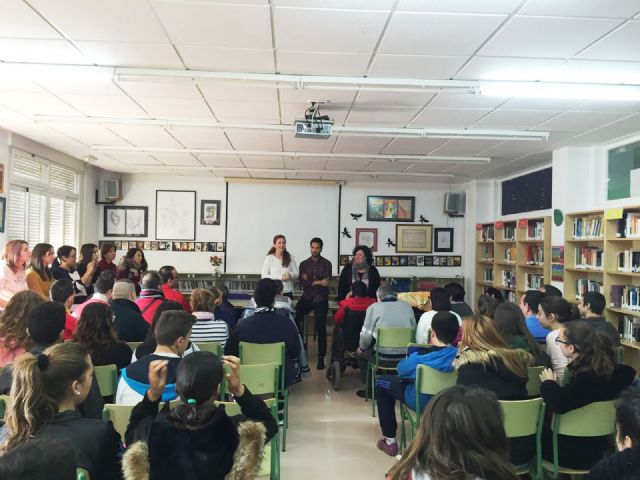 CEPAIM elaboró un vídeo junto a las chicas y chicos del IES Felipe II y los usuarios del Centro de Día. Tras editarlo, la directora de la fundación en Murcia, Ascensión Tudela, decidió presentarlo este martes en el instituto mazarronero. Al acto asistieron los concejales de Política Social y Educación, Laura Ortiz y Patricio Sánchez, además del director del Centro de Día, Salvador Sánchez y funcionarios del Centro de Atención Especializada para Mujeres Víctimas de Violencia de Género (CAVI) de Mazarrón.