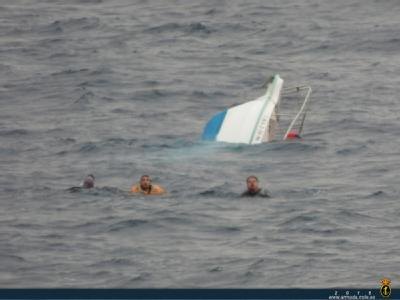 A primera hora de esta mañana el buque auxiliar “Las Palmas” recibió un aviso de emergencia de Salvamento Marítimo de Cartagena informándole de la emergencia, dirigiéndolo al lugar del hundimiento. Una vez localizada la embarcación, el “Las Palmas” ha procedido a arriar una embarcación y recoger a los tres náufragos que se encontraban en el agua mientras la embarcación se hundía.