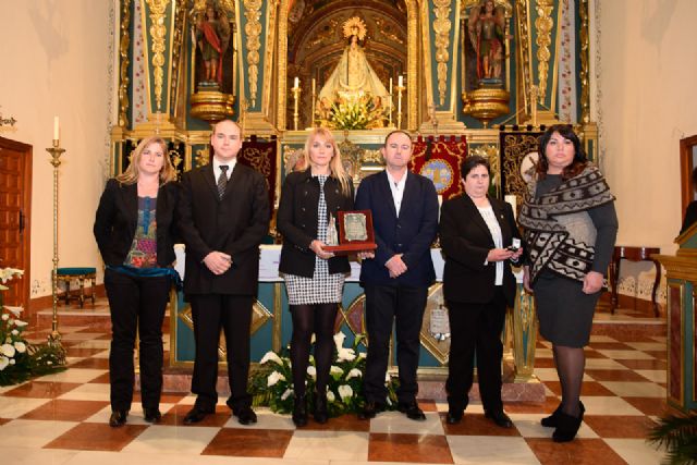 Un momento muy especial fue el que se vivió en el templo durante la entrega del reconocimiento de Nazareno del Año, a título póstumo, a Andrés Navarro Aznar, quien fuera presidente del Cabildo de Cofradías y que falleció el pasado mes diciembre. El concejal de Cultura, Pedro Martínez, le hizo entrega a sus familiares de una placa en la que se reflejaba el nombramiento.