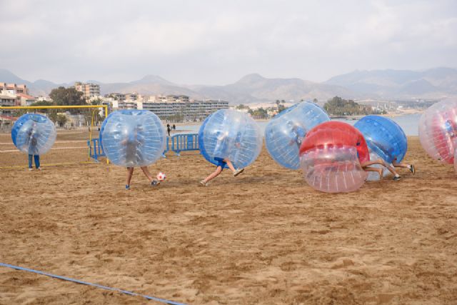 Ya por la tarde, el público llenó la grada instalada en la playa del Puerto para presenciar el divertido campeonato de Bubble Football, evento novedoso que ofreció diez encuentros repartidos en las diferentes categorías.