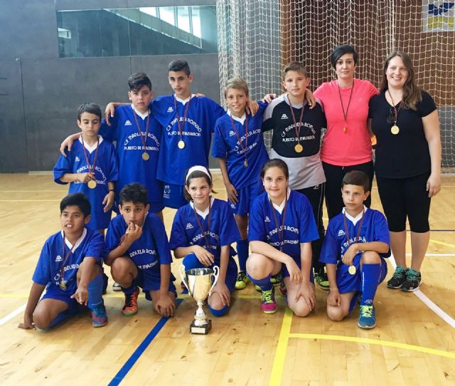 El equipo alevín de fútbol sala del CEIP Manuela Romero de Puerto de Mazarrón se proclamó el pasado fin de semana campeón regional en Deporte Escolar, tras vencer por 5 a 2 al Colegio Pérez Villanueva de Cehegín en la final disputada en el Polideportivo Municipal de Águilas.