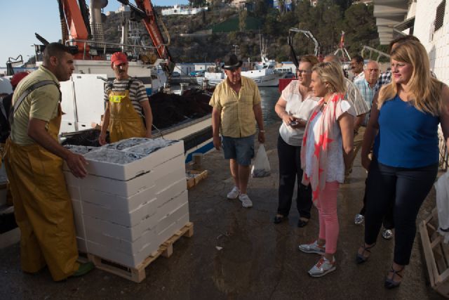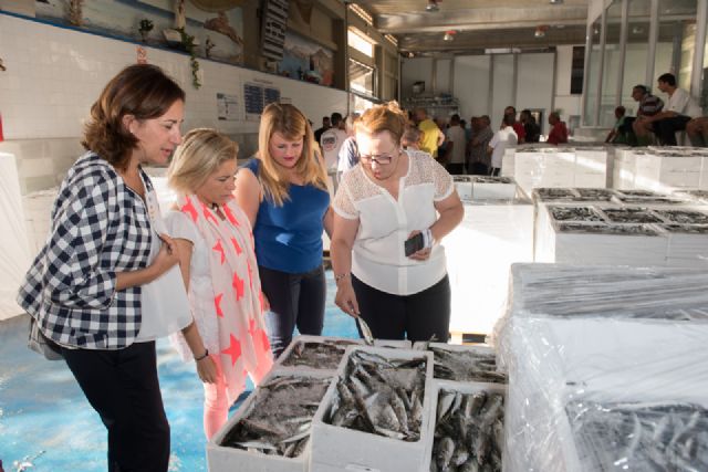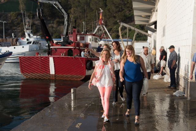 La consejera de Agricultura, Agua y Medio Ambiente de la Comunidad Autónoma, Adela Martínez-Cachá, junto a la alcaldesa de Mazarrón, Alicia Jiménez, ha sido testigo este viernes de una nueva jornada ampliamente productiva en la lonja de pescadores del muelle de Puerto de Mazarrón, donde el pasado lunes se batieron récords de capturas al contabilizar 80.000 kilos de boquerón, cifra que no se registraba desde hacía 25 años.