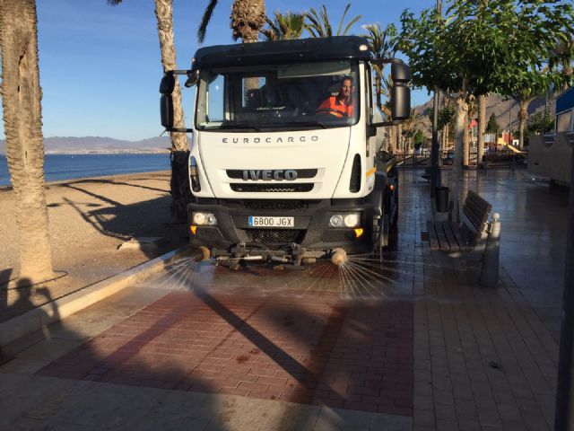 El Ayuntamiento de Mazarrón ha lanzado para este verano un Plan Integral de Mejora del Servicio de Limpieza Viaria. Los resultados ya han sido percibidos en las pasadas semanas focalizándose, principalmente en los trabajos que lleva a cabo un camión de baldeado, con capacidad para 10.000 litros, que con agua a presión limpia tres veces en semana las zonas más concurridas y los paseos marítimos de Puerto, Castellar y Bolnuevo. Así lo ha destacado el concejal de Servicios del Ayuntamiento de Mazarrón, Domingo Hernández.