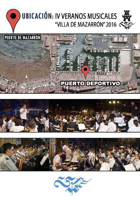 El ciclo 'IV Veranos Musicales "Villa de Mazarrón" 2016' constará de tres conciertos en domingos consecutivos a las nueve de la noche. Comenzará el domingo, día 17 de Julio, con la actuación de la banda de música de la 'Asociación de Amigos de la Música de Alcantarilla'. Continuará el domingo siguiente, 24 de julio, la banda de música anfitriona y corresponsable, junto a la concejalía de Cultura del Ayuntamiento de Mazarrón, de la organización de estos ciclos de conciertos, la Asociación Musical 'Maestro Eugenio Calderón' de Mazarrón. Y cerrará la presente edición el domingo, 31 de julio, el concierto de la 'Asociación Banda de Música de Molina de Segura'.