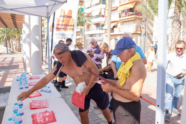 Voluntarios de Protección Civil repartirán el próximo mes de agosto 70.000 botellines de agua, en cuya etiqueta se ha insertado un decálogo de consejos destinados a prevenir los accidentes en la playa. La campaña, denominada 'Disfruta de un baño seguro' fue presentada hoy por la consejera de Presidencia, María Dolores Pagán, en la playa del Puerto de Mazarrón, acompañada por la alcaldesa de la localidad, Alicia Jiménez.