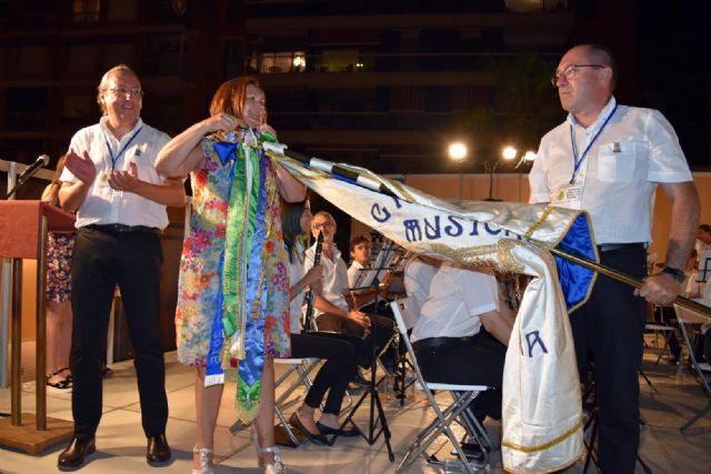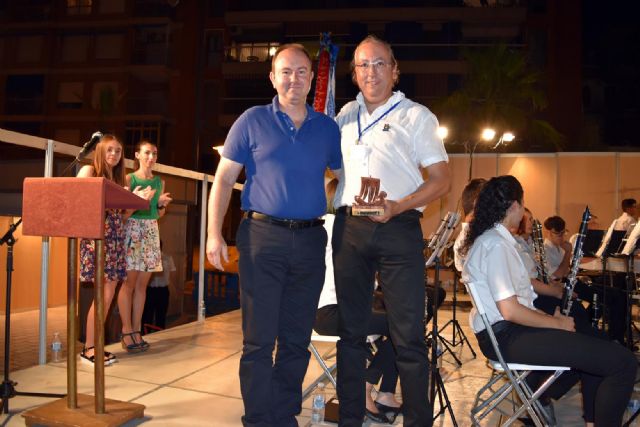 El concejal de cultura, D. Pedro Martínez Pagán, que ha asistido a todos los conciertos del ciclo, entregó al presidente de la asociación 'Banda de Música de Molina de Segura' una réplica del barco fenicio, el símbolo elegido para obsequiar a las bandas participantes en estos encuentros; y la presidenta de la Asociación Musical 'Maestro Eugenio Calderón', Doña Francisca Ureña Sánchez, colocó en la bandera de la banda invitada el corbatín con el lema 'IV Veranos Musicales - Villa de Mazarrón 2016'.