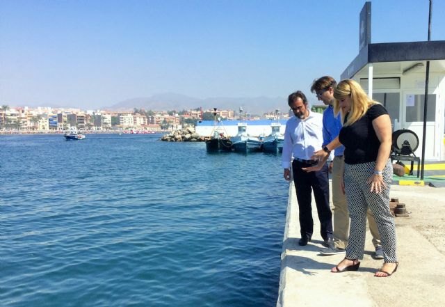Rivera, acompañado por la alcaldesa de Mazarrón, Alicia Jiménez, y el patrón mayor de la Cofradía de Pescadores de Puerto de Mazarrón, Manuel Sánchez, visitó el muelle para comprobar su estado, "especialmente afectado por el paso del tiempo y por las maniobras de atraque de embarcaciones en su frente y en la zona de lonja".