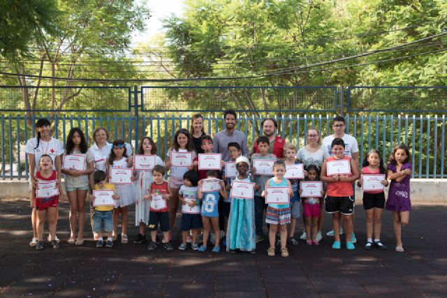 Los alumnos de las Escuelas de Verano de los colegios La Cañadica de Mazarrón y Bahía de Puerto de Mazarrón han recibido este viernes el diploma que acredita haber completado con éxito el periodo lectivo estival, recuperado por la Concejalía de Política Social, en colaboración con Cruz Roja, para conciliar la vida laboral y familiar de los padres.