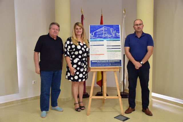 Las pedanías de Cañada de Gallego, Majada, Bolnuevo y El Saladillo-Camposol se incorporan por vez primera a la programación de cursos presenciales que oferta la Universidad Popular de Mazarrón. El plazo de matrícula de la temporada 2016/2017 permanecerá abierto hasta el próximo 7 de octubre con más de 30 cursos divididos en siete especialidades diferentes. La oferta ha sido presentada este jueves por la alcaldesa de Mazarrón, Alicia Jiménez y por el director de la Universidad Popular de Mazarrón, José María López, en una rueda de prensa que también ha contado con la presencia del concejal de Cultura, Pedro Martínez.