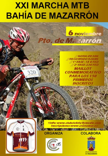 La marcha recorrerá los principales parajes de la bahía de Mazarrón desde la costa a las zonas de interiores con un desnivel acumulado de 1.250 metros y un total de 52 kilómetros Las inscripciones siguen abiertas, pudiéndose formalizar en www.cronomur.es y en la web del club ciclista. La organización reservará 25 plazas de inscripción para el día de la prueba en la línea de salida y meta que tendrá lugar en la Plaza de las Comunidades Autónomas de Puerto de Mazarrón.