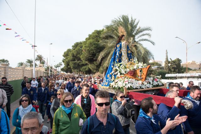 La Virgen del Milagro de Bolnuevo ya está en Mazarrón. Centenares de personas han acompañado este domingo a la imagen desde Bolnuevo hasta el Jardín de la Purísima de Mazarrón donde ha sido recibida por las autoridades civiles y religiosas, para más tarde ser trasladada hasta la iglesia de San Andrés donde ha tenido lugar una Santa Misa. La imagen permanecerá toda la semana en el templo hasta el próximo domingo 20 de noviembre cuando tendrá lugar la multitudinaria romería que volverá a llevar a la Purísima hasta su ermita de Bolnuevo. Miles de personas disfrutarán de una jornada de convivencia que culminará en la playa con moragas y barbacoas entre familia y amigos.