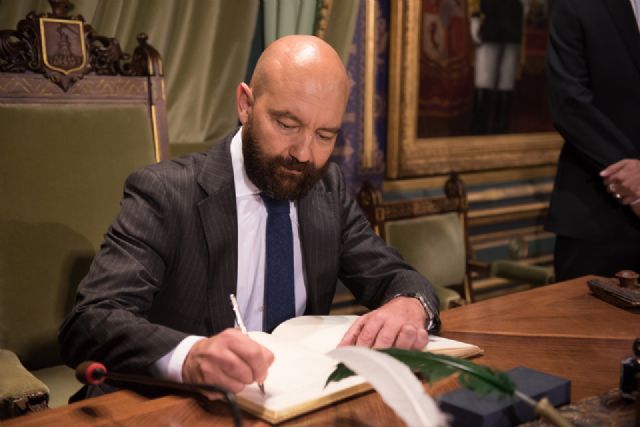 El actual presidente de CESCE firmó en el Libro de Honor del Consistorio y recibió el Escudo de Oro de manos de la alcaldesa