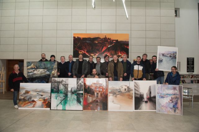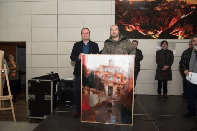 La fachada de Casas Consistoriales vista desde un callejón frontal es la imagen que capta en su cuadro Cristóbal León, ganador del primer premio del Certamen Nacional de Pintura Al Aire Libre Paisajes de Mazarrón "Domingo Valdivieso". Primer puesto dotado con 2.500 euros y otorgado por el Ayuntamiento de Mazarrón de manos del concejal de Cultura, Pedro Martínez.