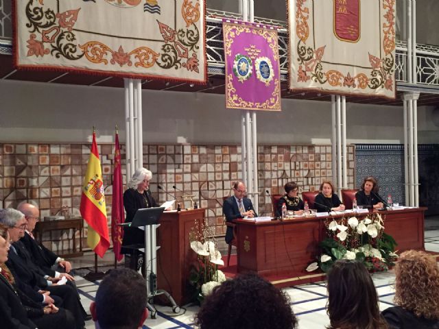 Encarna Zamora ha pronunciado el discurso inaugural del curso de la Academia de Farmacia Santa María de España, durante un acto solemne que acogió el Patio de los Ayuntamientos de la Asamblea Regional de Murcia y que contó con la asistencia de la alcaldesa de Mazarrón, Alicia Jiménez.