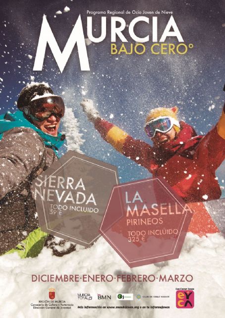 La Concejalía de Juventud del Ayuntamiento de Mazarrón a través de la Dirección General de Juventud de la Región de Murcia anima a los jóvenes del municipio de entre 14 y 36 años a practicar deportes de invierno como esquí alpino y snowboard, ofreciendo estancias de fin de semana y viajes de un solo día a Sierra Nevada y estancia de cuatro días en Pirineos. Las actividades programadas incluyen transporte, clases de iniciación o perfeccionamiento, alquiler de material, seguros y, en su caso, alojamiento.