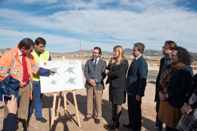 La alcaldesa de Mazarrón, Alicia Jiménez, y el consejero de Fomento, Pedro Rivera, visitaron esta mañana las obras de construcción de la nueva rotonda en la carretera regional RM-332, que facilita el acceso al complejo polideportivo Media Legua de la localidad y que se prevé que finalicen antes de Semana Santa. El presupuesto de estas obras es de 258.371 euros.