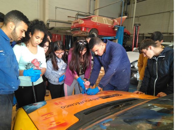 Atendidos por la directora del centro, Rosa Laborda, los alumnos de ambos centros educativos conocieron, en detalles, los ciclos de mecanizado, fabricación mecánica, automoción, chapa y pintura, laboratorio, electricidad y química.