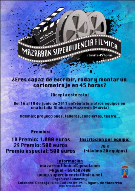 Del 17 al 19 de junio Mazarrón será un punto de encuentro para aficionados y profesionales del mundo del cortometraje. Durante ese fin de semana tendrá lugar el III Certamen de Supervivencia Fílmica que organiza la productora Filmurray en colaboración con el Ayuntamiento de Mazarrón. El certamen ha sido presentado este miércoles por el concejal de Cultura, Pedro Martínez, en compañía de Miguel Morales y Marta Carrasco, responsables ambos de una actividad que tiene como objetivo la difusión de la cultura cinematográfica.