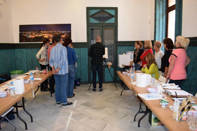 El pintor, nacido en Mula, Nono García impartió el pasado fin de semana en Casas Consistoriales de Mazarrón un taller de acuarelas dirigido a una quincena de alumnos que disfrutó de la experiencia de pintar junto a un reconocido artista y con el que pudieron perfeccionar una de las técnicas pictóricas más populares.