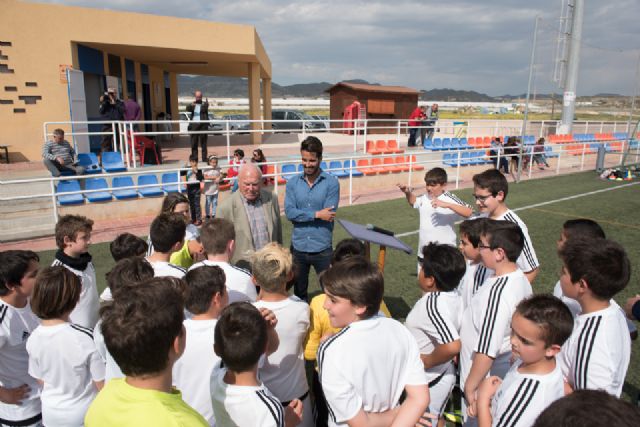 A Agustín Herrerín le acompañaban Eduardo Agulla, director técnico de escuelas sociodeportivas de fútbol del Real Madrid, Jonathan Araujo, coordinador de escuelas de fútbol de la Fundación Real Madrid y Ana Sanjanbenito, directora de comunicación. Por Aqualia asistieron Higinio Martínez, director de la delegación de Levante y Miguel Ángel Jiménez, delegado de la empresa en Mazarrón. Higinio Martínez agradeció en nombre de Aqualia al Ayuntamiento la oportunidad que le ha ofrecido "para colaborar en una estupenda iniciativa que promueve la educación en valores a través del deporte y el uso saludable del tiempo de ocio. Esta colaboración forma parte de nuestro compromiso con la sociedad, con los ciudadanos de los municipios en los que trabajamos. Más allá de la gestión del agua, colaboramos en iniciativas deportivas como esta que responden a las necesidades de la sociedad del futuro", aseguró Hignio Martínez.