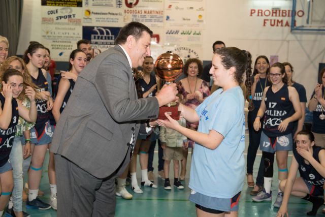 Las jugadoras del Molina Basket se proclamaron este domingo campeonas regionales de la Final Four Cadete de Baloncesto Femenino celebrada en Mazarrón. La alcaldesa, Alicia Jiménez, asistió a la final y a la posterior entrega de trofeos que tuvo lugar en el Pabellón Municipal de La Aceña que llenó sus gradas durante la celebración del campeonato. El presidente de la Federación de Baloncesto de la Región de Murcia, Juan Carlos Hernández, hizo entrega de la copa de campeonas a la capitana del ACG Molina Basket que se impuso por 70 a 61 al AD Infante de Murcia, a la postre subcampeón.