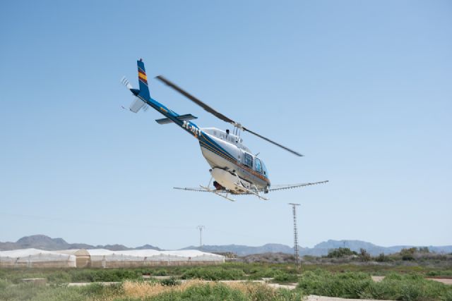 Técnicos de la empresa adjudicataria Lokímica han realizado este martes un nuevo tratamiento de control aéreo para reducir las posibles incidencias que pueda ocasionar la presencia de mosquitos. La alcaldesa de Mazarrón, Alicia Jiménez, ha comprobado el despliegue que llevan a cabo los profesionales con notables resultados en el último año. En 2016 se logró reducir en un 40% el número de avisos por mosquitos. Todo ello gracias, especialmente, por el refuerzo con medios aéreos a los que tradicionalmente se llevan a cabo en tierra.