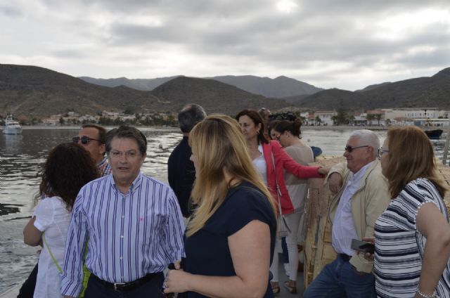 La alcaldesa, Alicia Jiménez, acompaña al consejero de Agricultura y Pesca, Francisco Jódar, en su visita a La Azohía y al posterior encuentro con pescadores del municipio