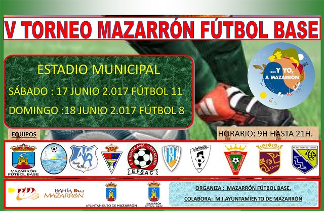 El Estadio Municipal de Mazarrón albergará el sábado 17 y el domingo 18 de junio la quinta edición del Torneo de Mazarrón Fútbol Base. Un total de 27 equipos participará en las distintas categorías en las modalidades de fútbol 11 y fútbol 8.