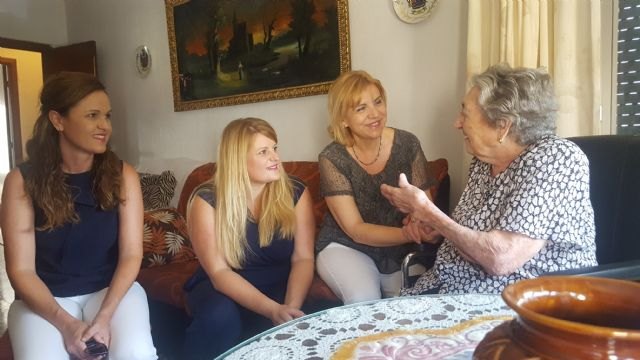 La consejera de Familia e Igualdad de Oportunidades, Violante Tomás, junto con la alcaldesa de Mazarrón, Alicia Jiménez, visitó hoy a uno de los usuarios que se beneficia del nuevo servicio de Ayuda a Domicilio, donde destacó que la Comunidad financia con más de 174.000 euros la atención a las personas dependientes de este municipio.