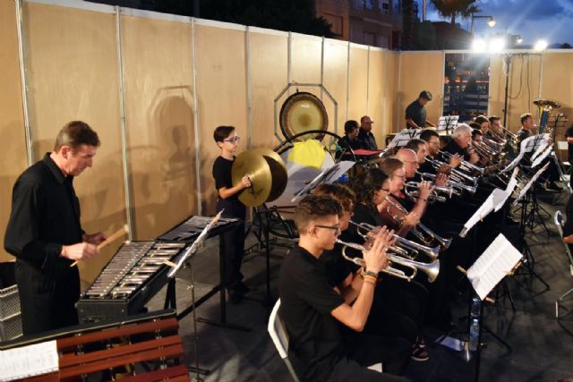 Para dar comienzo a la segunda parte del concierto, a los sesenta músicos sobre el escenario, se unieron los cantantes Miguel Ángel Miras e Irene Tudela, dando un giro de programa hacia la música pop del último cuarto del siglo XX. Ambos cantantes se alternaron para deleitar al público con temas de Abba y Mecano de los arreglos para banda 'Abba Gold' de Ron Sebregts y 'Mecano' de Azael Tormo, así como con la canción 'New York, New York' que popularizó Frank Sinatra en los años ’70. Los cantantes consiguieron la participación gustosa del público que al inicio del concierto superaba las cuatrocientas personas y que siguió creciendo a lo largo de todo el concierto, cautivando a los paseantes que se quedaban como espectadores de pie, rebasando con creces el aforo previsto.