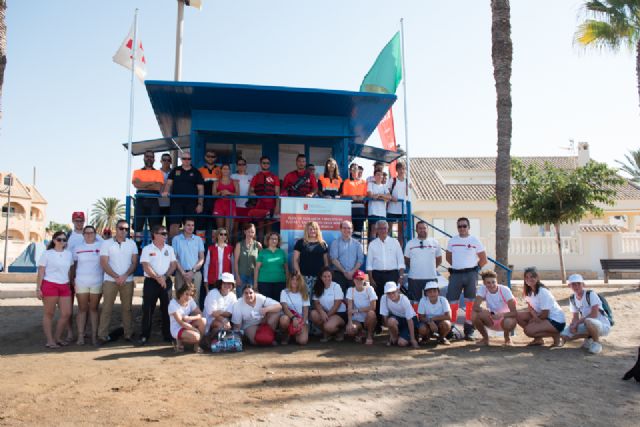 El director general de Emergencias, José Ramón Carrasco, ha visitado este viernes la playa de El Castellar para comprobar el operativo del Plan Copla municipal, organizado en Mazarrón en colaboración con Cruz Roja. En su visita, acompañado, de la alcaldesa, Alicia Jiménez, ha hecho balance de las estadísticas que ofrece hasta la fecha el plan de salvamento regional en playas. En total se han registrado 23.700 asistencias en junio y julio, lo que supone un 12% menos que en el mismo periodo de 2016.