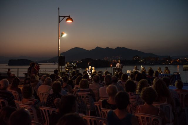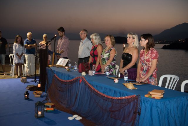 El mirador "Agustín López Cano" de Bahía, junto al Club de Regatas, acogió este viernes 18 de agosto una nueva edición del recital de poesía "Mares de papel que organiza la Concejalía de Bibliotecas del Ayuntamiento de Mazarrón.
