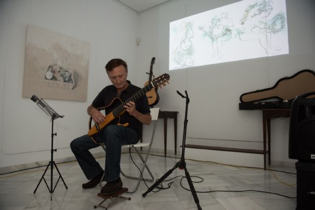 Maxi Garcés se sumó el pasado viernes a los actos conmemorativos del 125 aniversario de Casas Consistoriales. El autor ofreció un concierto de guitarra en una de las salas expositivas del edificio. Garcés deleitó con su música al público asistente en un marco ideal para la expresión artística.