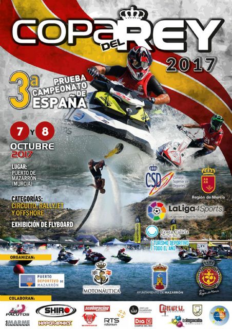 Por segundo año consecutivo, las aguas de la Bahía de Mazarrón serán sede de la Copa del Rey y última prueba puntuable del Campeonato de España de Motos de Agua que organiza, con la colaboración del Ayuntamiento de Mazarrón, la Federación Murciana de Motonáutica. En esta ocasión será la playa del Puerto el lugar que acoja la competición durante el fin de semana del 7 y 8 de octubre.