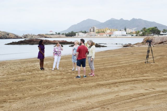 Periodistas, equipo técnico y productores del programa "A place in the sun" que se emite en la televisión británica Channel 4 ruedan a principios de esta semana un nuevo capítulo en la costa de Mazarrón. Este lunes se les ha podido ver grabando una entrevista en la playa de Bahía Chica. El equipo tiene previsto estar dos días en el municipio, trabajando en diferentes localizaciones.