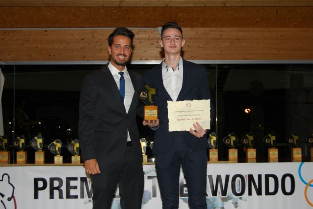 Rubén García, del club Taekwondo Mazarrón, reconocido como el mejor deportista senior en la Gala del Taekowndo regional celebrada el pasado viernes en Cartagena