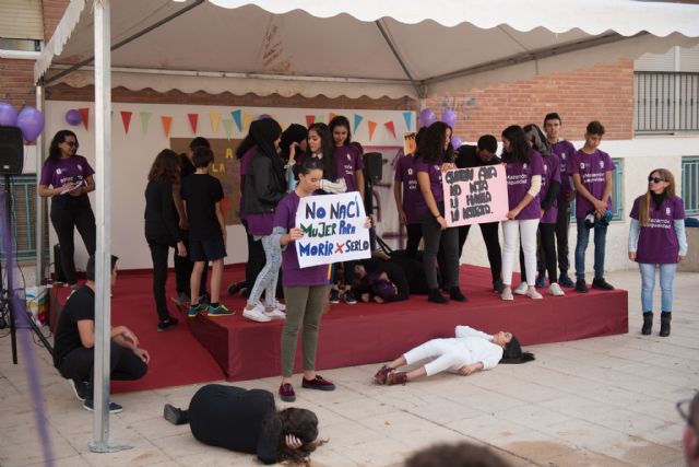 Seguidamente los centros educativos participantes han mostrado su rechazo con diferentes actividades. Teatro, música y mensajes reivindicativos han ofrecido el compromiso claro de la comunidad educativa con la idea de erradicar la violencia contra la mujer. Miembros de la corporación municipal y trabajadores de Política Social han acompañado a los alumnos durante el desarrollo del acto celebrado en la Plaza del Ayuntamiento. La actividad ha finalizado con una Gymkana por la Igualdad.