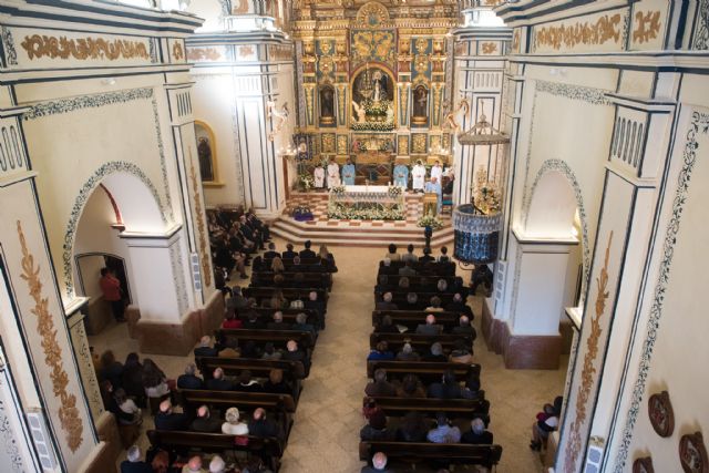 A mediodía se celebró, en el Santuario, la Solemne Eucaristía durante la que se interpretó la Misa Mazarronera compuesta, para honrar a la Patrona, hace más de medio siglo por Juan de la Cruz y Antonio Saura. La alcaldesa, Alicia Jiménez, asistía a este acto junto a otros miembros de la corporación municipal.