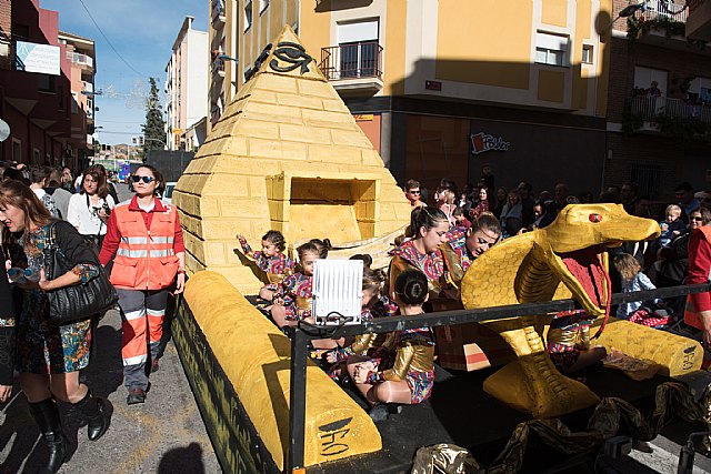 Abrió el desfile la Asociación de Vehículos Clásicos, seguida de la Banda de Tambores y Cornetas de Mazarrón, para dar paso a una carroza representativa del Carnaval de Mazarrón. Le siguieron las carrozas del Rey, reina infantil y damas de honor, la de la Reina de las Fiestas, Tercera Edad, una carroza huertana, la Banda de Tambores de Puerto de Mazarrón y las carrozas que entraban en concurso.
