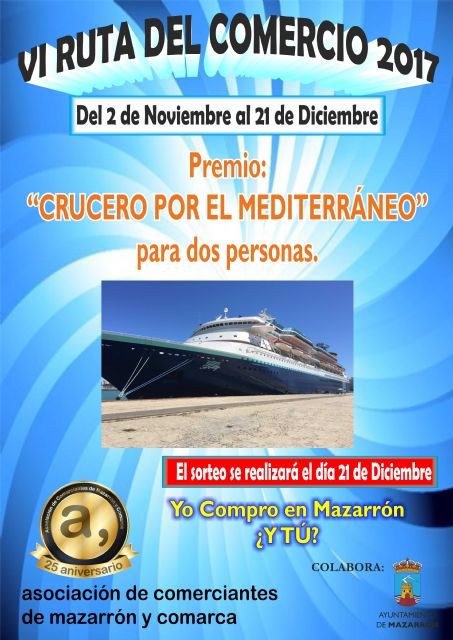 Esta campaña coincide con el final de la VI Ruta del Comercio en la que participan 46 establecimientos de Mazarrón y Puerto. La ruta sorteará un crucero entre los clientes que hayan participado. El sorteo tendrá lugar el 21 de diciembre a las 21:00 horas en la sede de ACOMA.