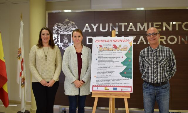 El Ayuntamiento de Mazarrón junto al colectivo de promoción social El Candil prestará el servicio de Escuelas de Navidad entre el 26 de diciembre y el 5 de enero en los colegios Bahía de Puerto de Mazarrón, Francisco Caparrós de Mazarrón y en el Centro Social de Cañada de Gallego. La actividad, presentada este miércoles por la Concejal de Política Social, Laura Ortiz, tiene un coste de 11.073 euros y es subvencionada por la Consejería de Familia e Igualdad de Oportunidades de la Región de Murcia, a través del Fondo Social Europeo, para la prestación de servicios de conciliación de la vida laboral y familiar.