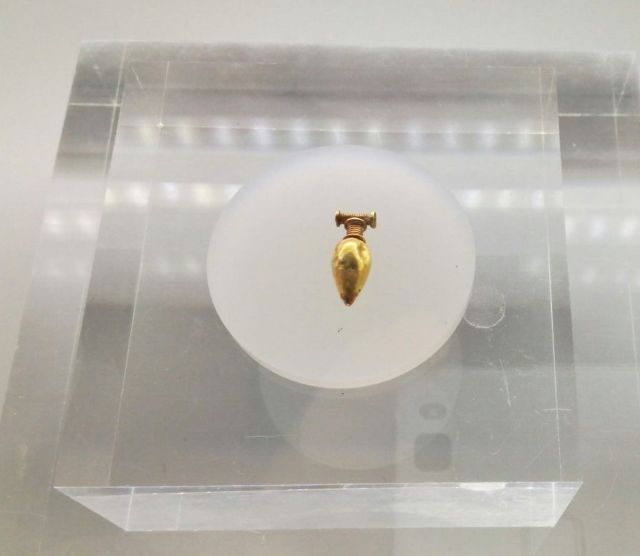 El colgante de oro fenicio hallado en la playa de La Isla se muestra durante un mes en el Museo Arqueológico de Murcia