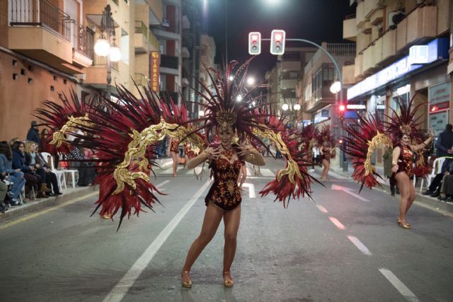 Inició el desfile Escuela de Baile Infantil "El Tolín", AMPA Colegio Ginés García, Playas de Percheles, Ambarela, Salsalá, Ana Ruiz Fitness & Dance y Titanes & Bahía Sur. A las comparsas locales les siguiern Mahula de Mula, Samaná de Mula, Oro Negro de Sangonera La Verde, Tukán de Sangonera La Verde, Dakarais de Sangonera La Verde, Elixir de Librilla, Rosazul de Sangonera La Verde y Shambala de Sangonera La Verde.