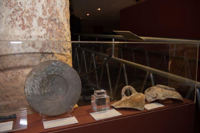El colgante de oro y otros restos de época fenicia hallados, en el entorno de la playa de la Isla, el pasado mes de septiembre por los alumnos del curso de arqueología subacuática de la Universidad de Murcia se exponen de forma permanente en el Museo Factoría Romana de Salazones.