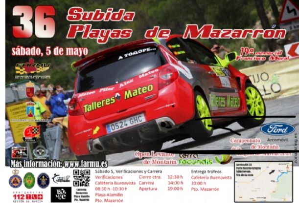 Mazarrón no faltará un año más a su cita más emblemática con el mundo del motor. 35 vehículos se concentrarán este sábado 5 de mayo en nuestro municipio para tomar la salida en la XXXVI Subida Automovilística Playas de Mazarrón que organiza la escudería Carthago en colaboración con la Concejalía de Deportes del Ayuntamiento de Mazarrón.
