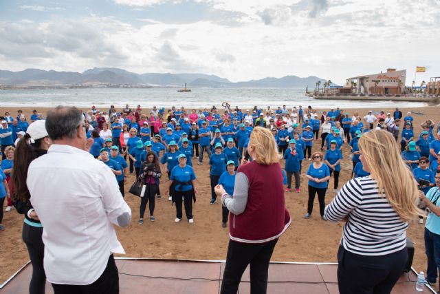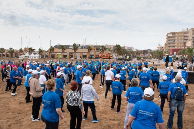 El encuentro de gerontogimnasia celebrado hoy en el Paseo Marítimo de Mazarrón ha congregado a 500 personas mayores procedentes de los 17 centros del Instituto Murciano de Acción Social (IMAS). Esta iniciativa trata de promover la calidad de vida de este colectivo a través de actividades de fomento del envejecimiento activo. El programa que el IMAS ofrece en los centros de mayores incluye talleres de promoción de la salud y el bienestar, desarrollo personal y ciclo vital y proyectos de formación, participación social y voluntariado.