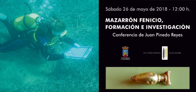 Juan Pinedo Reyes, arqueólogo subacuático y licenciado en Prehistoria y Arqueología por la Universidad Autónoma de Madrid ofrecerá el próximo sábado 26 de mayo (12:00 h.) en la Factoría Romana de Salazones de Puerto de Mazarrón la conferencia titulada "Mazarrón Fenicio. Formación e Investigación". La actividad es organizada por la Concejalía de Patrimonio Histórico del Ayuntamiento de Mazarrón.