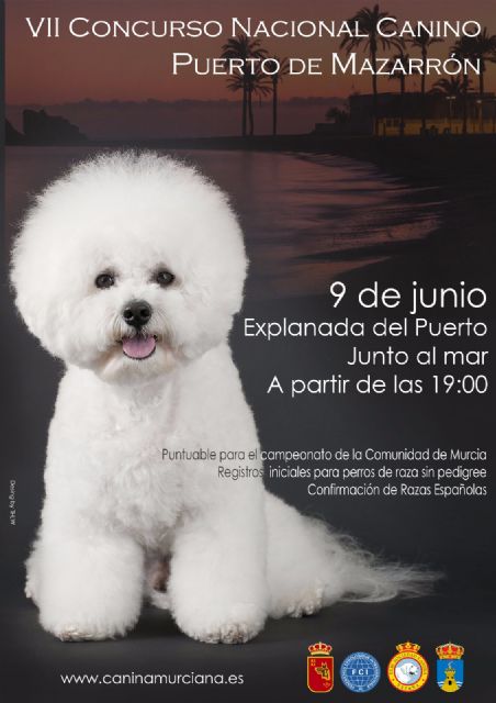 Los aficionados al mundo canino tienen este sábado 9 de junio una cita en Puerto de Mazarrón. A partir de las 19:00 horas en la Plaza de las Comunidades Autónomas se celebrará el VII Concurso Nacional de un campeonato que puntúa para el regional y en el que se podrán ver, como en anteriores ediciones, bellos ejemplares de las mejores razas.