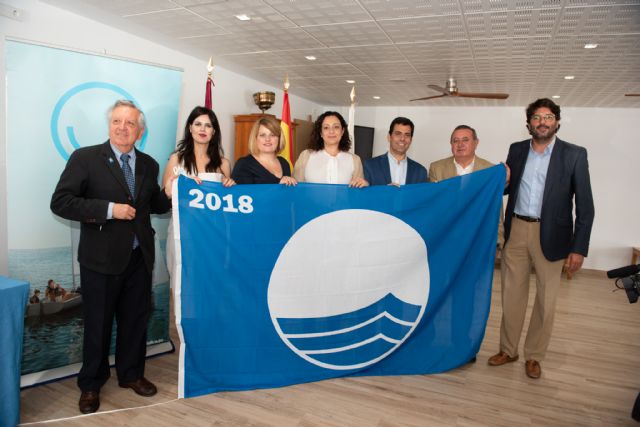 El municipio mostrará 10 banderas, 8 en playas y 2 en los puertos deportivos. El presidente de ADEAC, José Ramón Sánchez, la Consejera de Turismo, Miriam Guardiola y la alcaldesa de Mazarrón, Alicia Jiménez, asisten al acto protocolario celebrado en el Club de Regatas