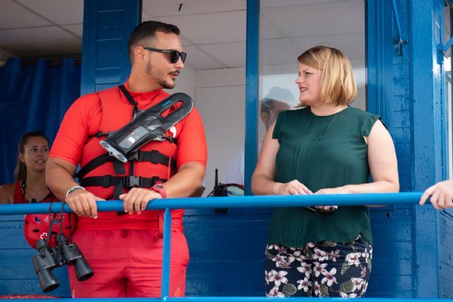 La alcaldesa de Mazarrón, Alicia Jiménez y el director general de Emergencias, José Ramón Carrasco, han presentado en la playa de El Castellar el Plan de Salvamento y Socorrismo en Playas para el presente verano, conocido como Plan COPLA.